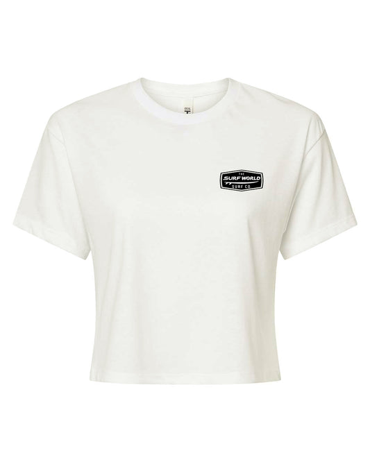 Surf World Double Palms Crop Tee - Off White